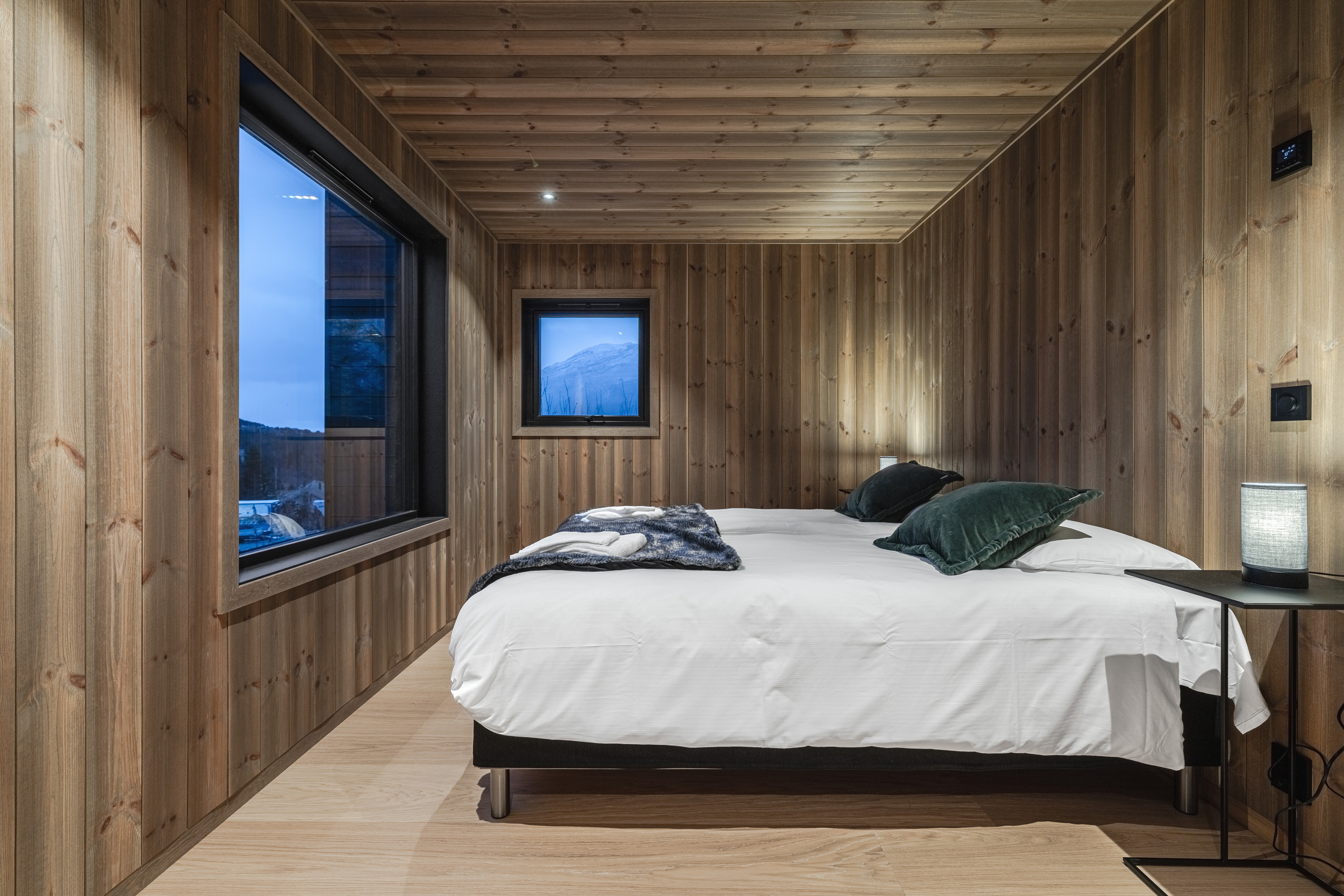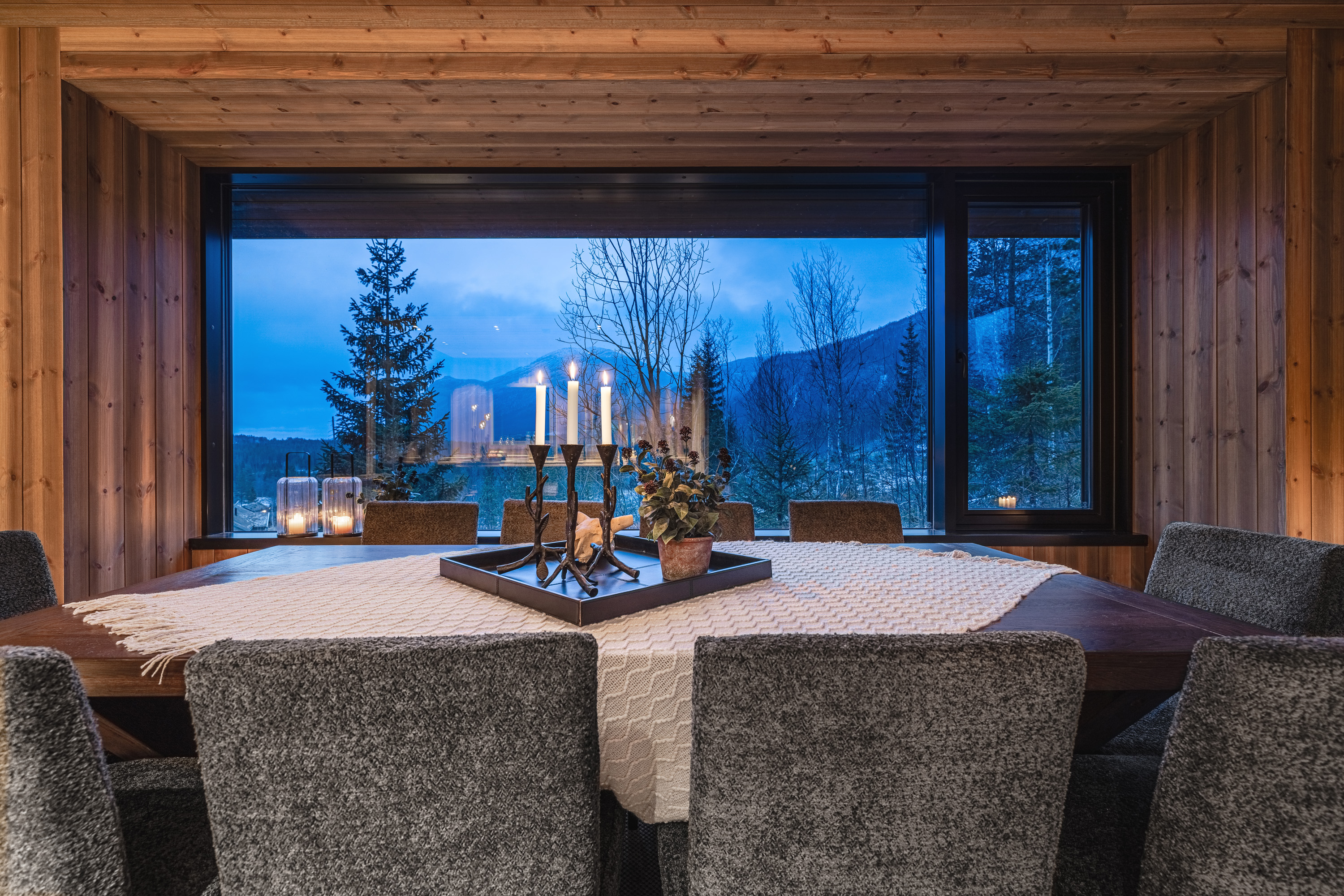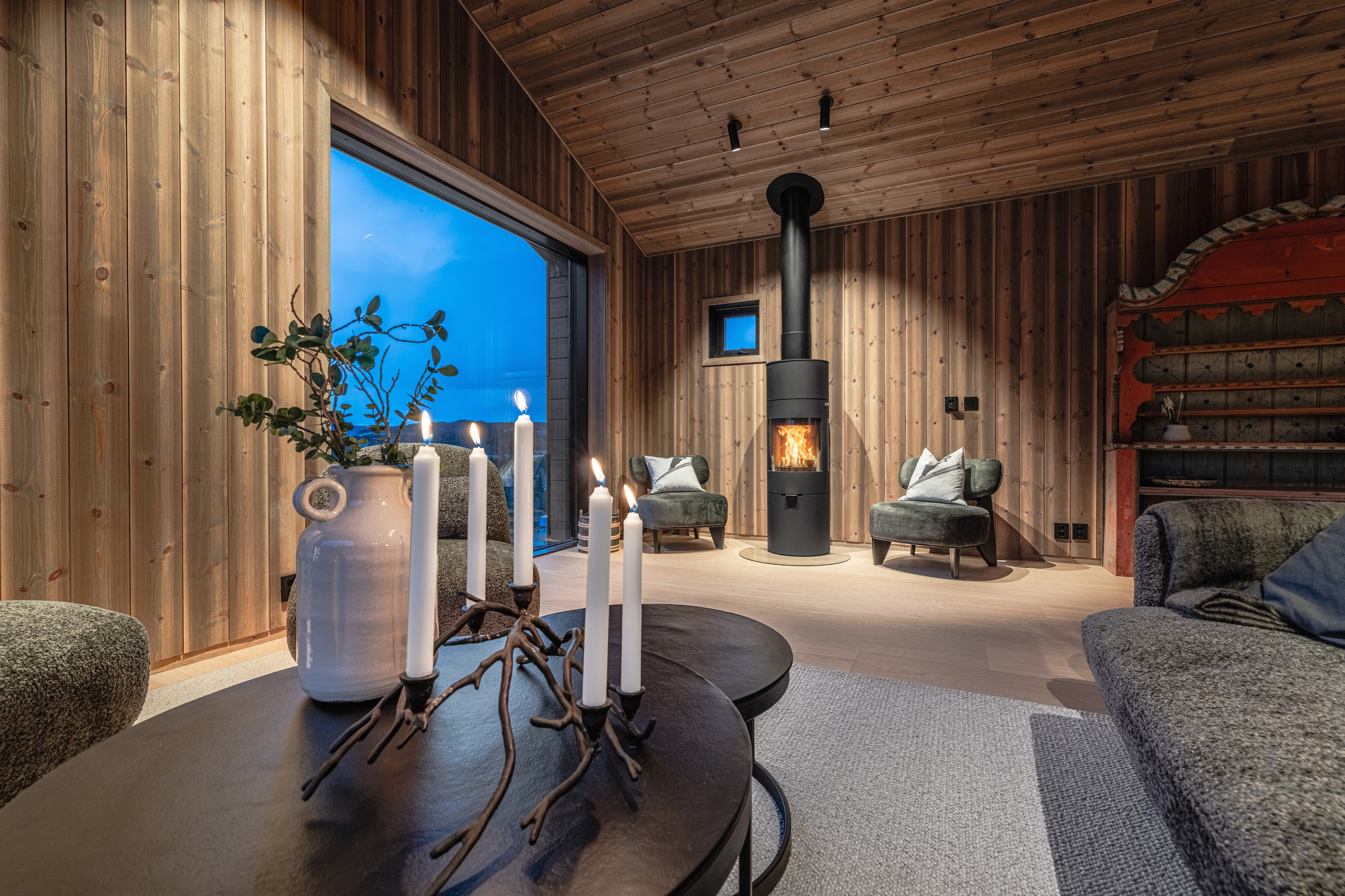 Hytta inneholder bl.a. 4 soverom, 2 bad, 2 boder, vaskerom, stor hall og parkering i garasje. Det er 3 etasjer med flere soner, og et stort oppholdsareal i den luftige toppetasjen.